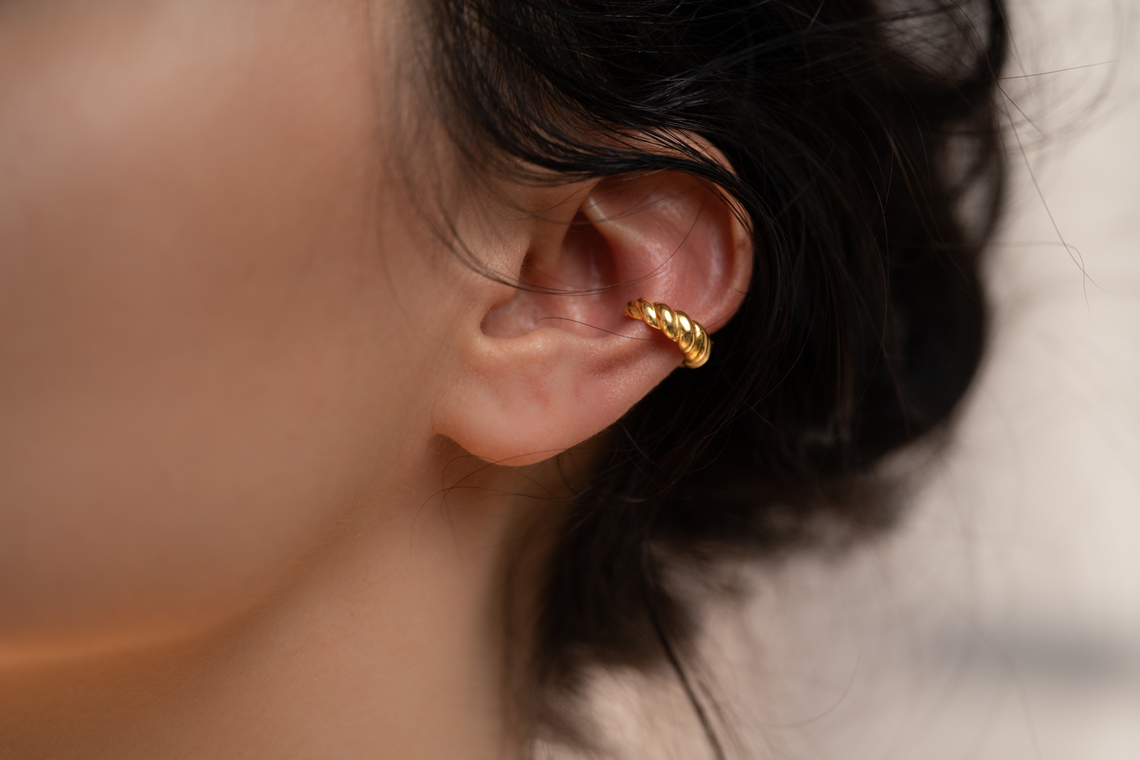Nausznica wykonana ze srebra pr. 925, pokryta 24-karatowym złotem.
